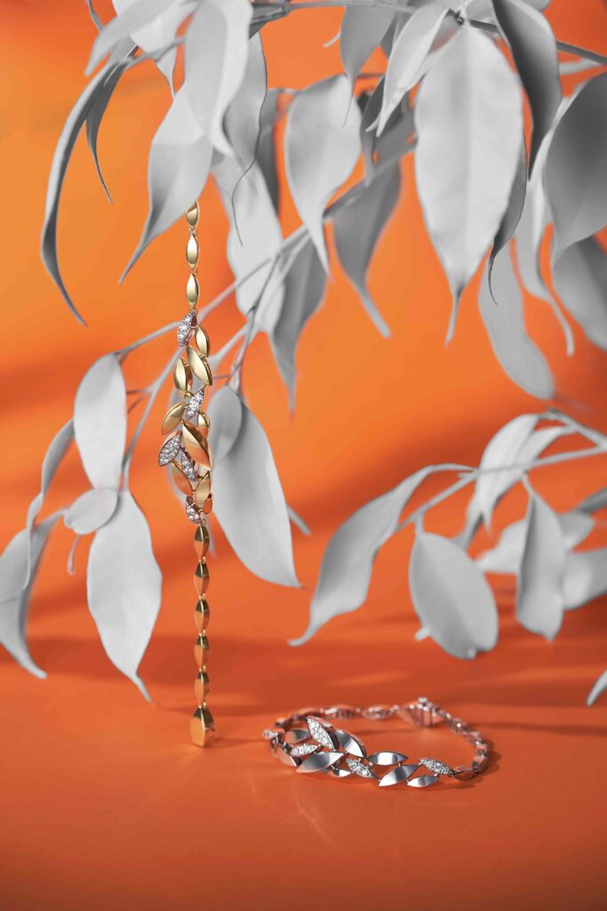 La collezione “Foglie“ trae ispirazione dalle fronde dell’Albero della Vita, simbolo iconico del brand e celebra la bellezza della natura insieme alla forza silenziosa della femminilità moderna: elegante, sofisticata e in armonia con sé stessa. Le forme sinuose delle foglie, realizzate in oro bianco e giallo e impreziosite da diamanti, catturano la luce per un effetto di movimento e leggerezza. Collier, anelli e pendenti diventano veri talismani di grazia e fascino, unendo design moderno e alta artigianalità.