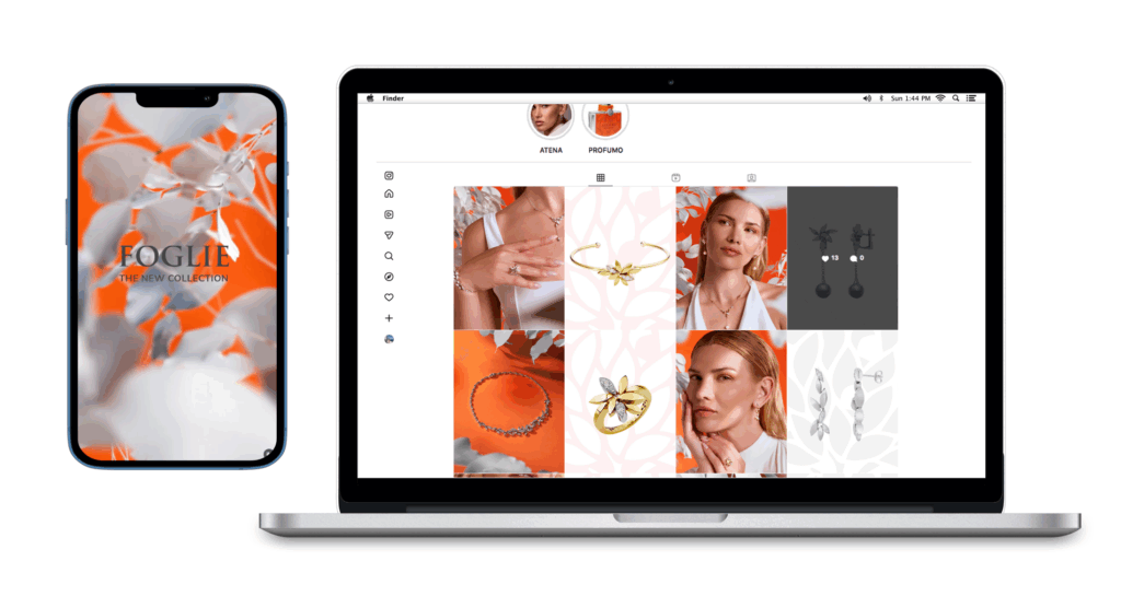 “Foglie” celebra la donna moderna, capace di rinnovarsi come la natura con le stagioni. Ogni gioiello diventa espressione della sua forza, bellezza e capacità di germogliare ogni giorno, raccontando una storia fatta di radici profonde e desideri per il futuro. Per il lancio della collezione, Opinion Leader, al fianco del Gruppo Gens Aurea dal 2016, ha curato shooting fotografico, storytelling e materiali per catalogo e social. L’agenzia ha strutturato uno storytelling capace di trasmette i valori del brand e l’identità della nuova linea. Una creatività che accompagna il pubblico alla scoperta di ogni dettaglio della collezione.