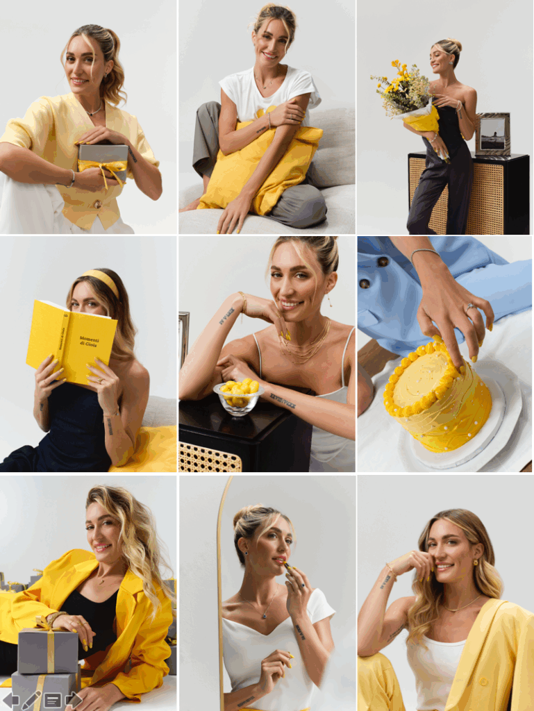 Protagonista della campagna multicanale è l’influencer Camilla Caimi: una vera ambassador di gioia capace, con il suo sorriso, di portare freschezza e modernità in ogni scatto. Il progetto si distingue per la presenza costate del giallo istituzionale e per il mood moderno e dinamico che strizza l’occhio all’universo digitale. Le immagini e le pillole video pensate per i profili social, sito, newsletter e Adv uniscono estetica editoriale, storytelling e impatto immediato, raccontando gioielli, orologi e idee regalo in maniera diretta, gioiosa e memorabile.